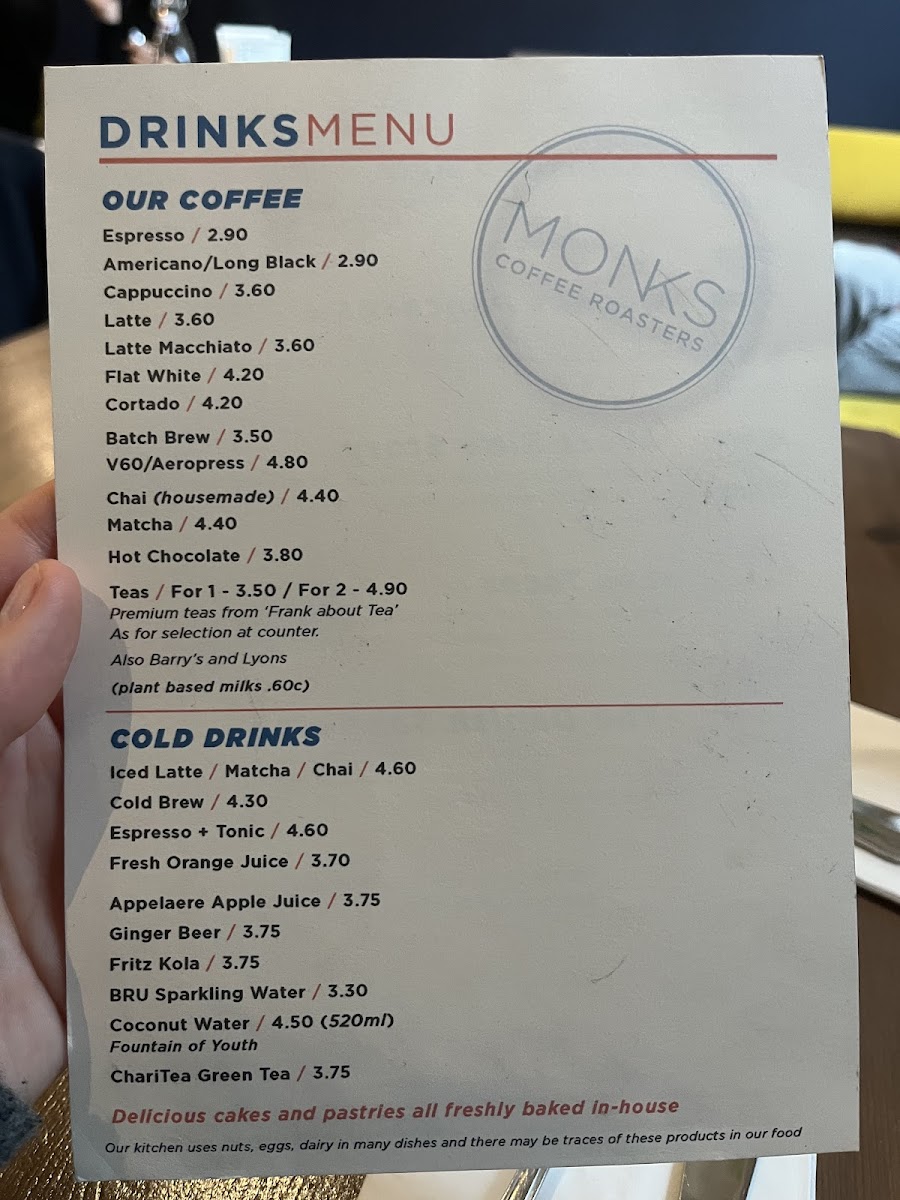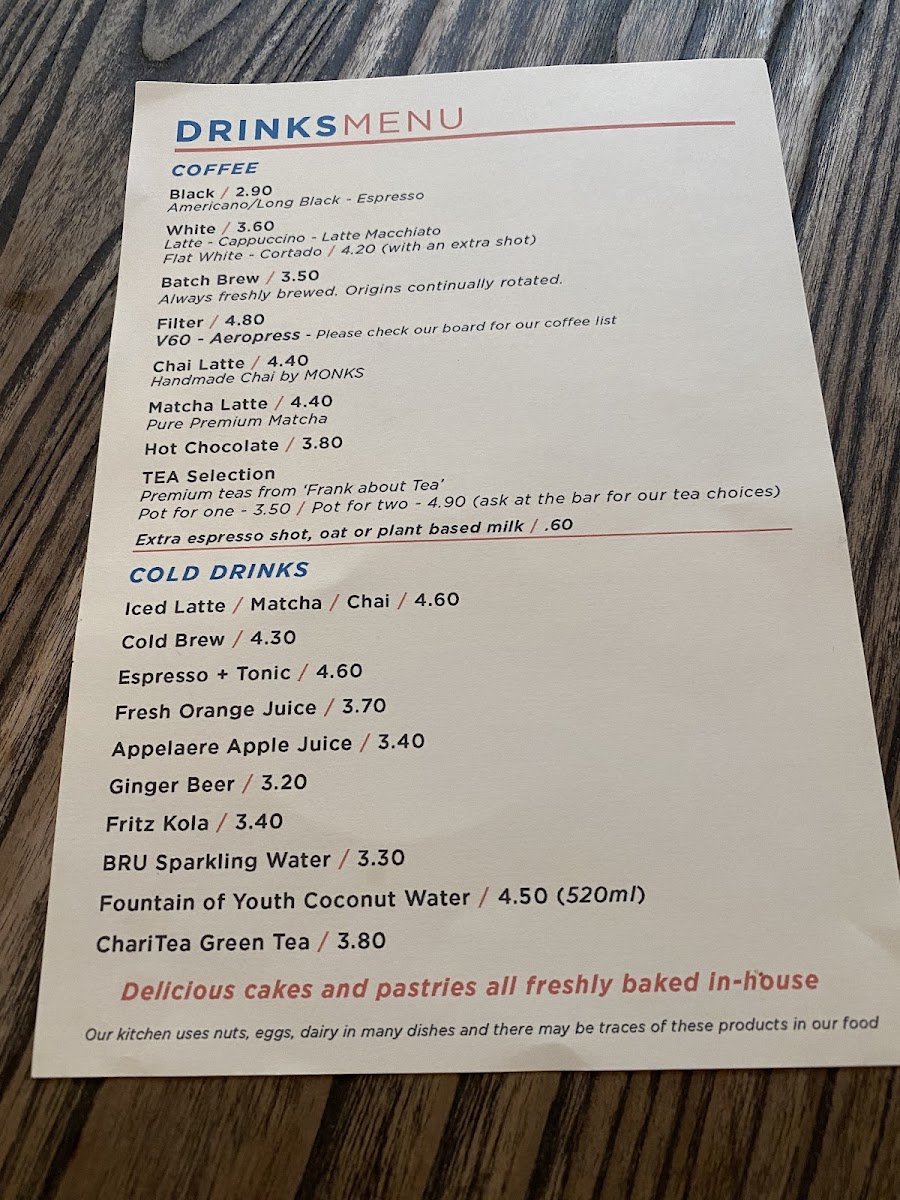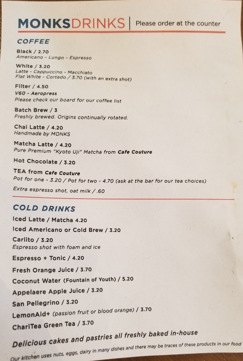 If you're looking for an inviting space to enjoy expertly crafted coffee and delicious bites, the Monks Coffee Roasters Menu has something for everyone. Located on Bilderdijkstraat 46H in Amsterdam, this cozy café offers a variety of brews, from rich espressos to creamy lattes, all made with the finest beans. Alongside the impressive selection of coffee, you'll find freshly baked pastries and snacks that perfectly complement each cup. Whether you're popping in for a quick caffeine fix or settling in for a relaxing afternoon, the menu provides the ideal balance of flavors and choices. With every item thoughtfully selected to enhance your experience, it’s easy to see why this café is a favorite among locals and visitors alike.